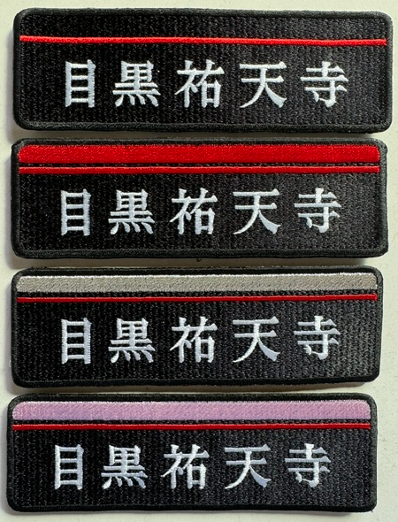 上から、一般拳士、太い赤は三段以上の役職者(副道院長など)、太い銀は道院長心得(私。これから大拳士と大導師を認めていただくと「道院長」で金に変わります)、太いさくら色は名用役職者:これまでお世話になった道院の元道院長に「相談役」として付けていただきます。